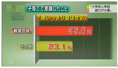 >>>いわゆる「難関大学」に合格するなどした子どもの保護者はそうでない保護者よりも、「思いっきり遊ばせること」「好きなことに集中して取り組ませること」を重視しており 、「子どもの遊ばせ方」については、「自発性を大切にした」と回答した人が多いそうです。