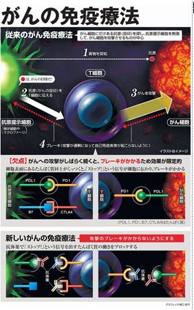 【大岩ゆり】 異物を排除する免疫の働きを利用して、がんを治療する「がん免疫療法」。最近、新タイプの治療法が登場し、成績が向上している。米科学誌サイエンスも、昨年の科学のブレークスルー(画期的な進展)のトップに選んだ。(続きはリンクから)
